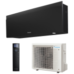 Daikin nástenná klimatizácia Emura – prepracované dizajnové línie a inžinierska výnimočnosť s elegantnou povrchovou úpravou v matno-čiernej farbe. O čistý vzduch sa postará patentovaná technológia Flash Streamer, Strieborný filter a Titánium apatitový deodorizačný filter. Vykurovať zvládne až do -20°C vonkajšej teploty.