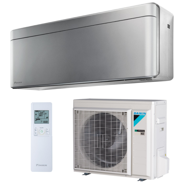 Daikin nástenná klimatizácia Stylish – kompletné klimatizačné riešenie spojené s nadčasovým dizajnom so zaoblenými rohmi a úzkymi rozmermi v bielej farbe – víťaz Reddot design award 2018. O čistý vzduch sa postará patentovaná technológia Flash Streamer, Strieborný filter a Titánium apatitový deodorizačný filter.