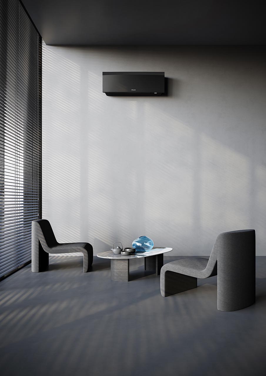 Daikin vnútorná nástenná klimatizačná jednotka Emura – pre zapojenie do multisplitu. Prepracované dizajnové línie a inžinierska výnimočnosť s elegantnou povrchovou úpravou v matno-čiernej farbe. O čistý vzduch sa postará patentovaná technológia Flash Streamer, Strieborný filter a Titánium apatitový deodorizačný filter. Vykurovať zvládne až do -15°C vonkajšej teploty.