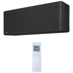 Daikin vnútorná nástenná klimatizačná jednotka Stylish – pre zapojenie do multisplitu. Kompletné klimatizačné riešenie spojené s nadčasovým dizajnom so zaoblenými rohmi a úzkymi rozmermi v čiernej farbe – víťaz Reddot design award 2018. O čistý vzduch sa postará patentovaná technológia Flash Streamer, Strieborný filter a Titánium apatitový deodorizačný filter.