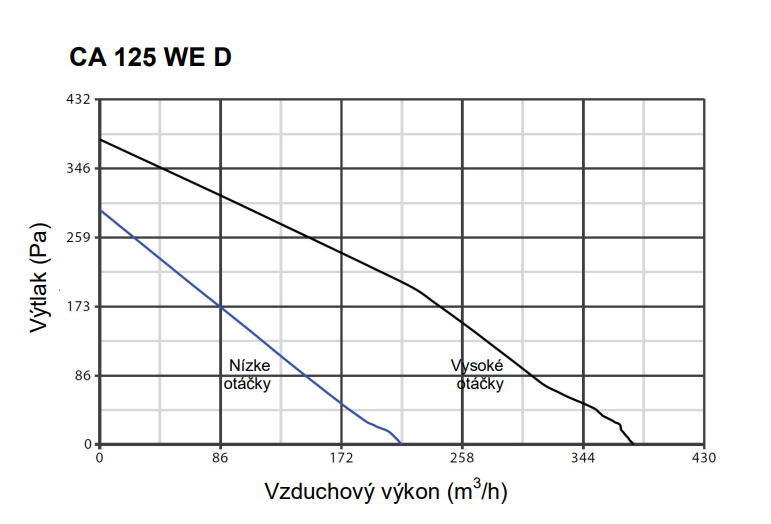 Potrubný radiálny ventilátor Vortice CA 125 WE D s priemerom pripojenia vzduchotechnického potrubia ø 125mm. Vhodný na odsávanie domácich i komerčných priestorov – kuchyne, kancelárie, sklady, úrady, obchody, toalety a iné. Motor s tienenými pólmi, tepelnou poistkou a guľôčkovými ložiskami z nerez ocele (LL – garancia 30 000 hodín bezporuchovej prevádzky). Dosahuje vyššie vzduchové výkony pri súčasnom dodržaní nízkej hlučnosti (Dostupný tlak 383 Pa / Prietok vzduchu 380 m3/h).