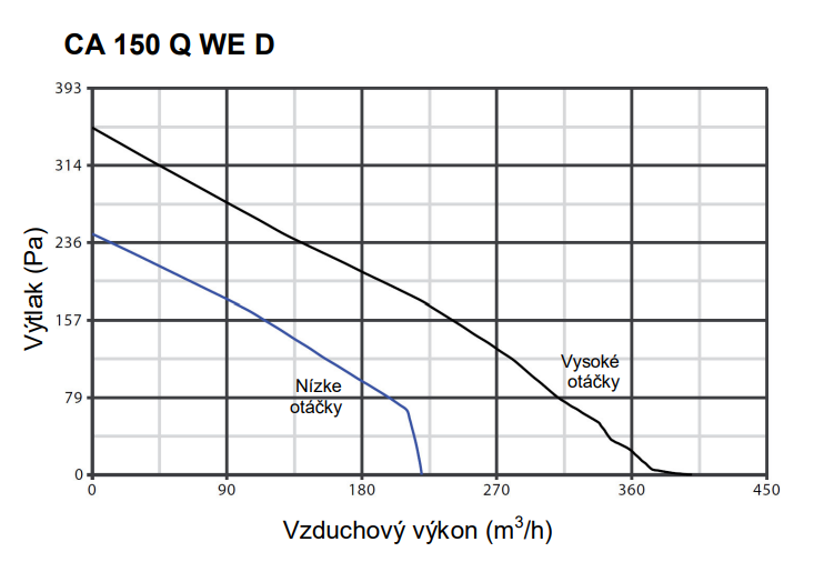 Potrubný radiálny ventilátor Vortice CA 150 Q WE D s priemerom pripojenia vzduchotechnického potrubia ø 150mm. Vhodný na odsávanie domácich i komerčných priestorov – kuchyne, kancelárie, sklady, úrady, obchody, toalety a iné. Motor s tienenými pólmi, tepelnou poistkou a guľôčkovými ložiskami z nerez ocele (LL – garancia 30 000 hodín bezporuchovej prevádzky). Dosahuje vyššie vzduchové výkony pri súčasnom dodržaní nízkej hlučnosti (Dostupný tlak 353 Pa / Prietok vzduchu 400 m3/h).