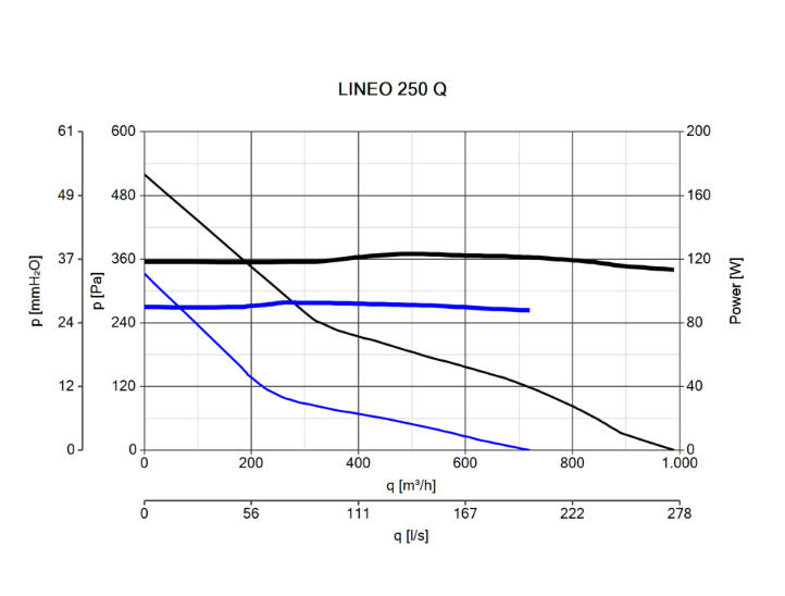 Dvojotáčkový potrubný ventilátor radu Lineo je vybavený AC motorom s 2-stupňovou reguláciou otáčok a guľôčkovými ložiskami. Určený na pripojenie potrubia ø 250mm. Vďaka svojim vlastnostiam a konštrukcii je vhodný pre dlhšie vzduchotechnické potrubie. Krytie IP44 zaisťuje ochranu proti prachu a striekajúcej vode zo všetkých strán. Obežné koleso ventilátora je vyvážené priamo na motore.