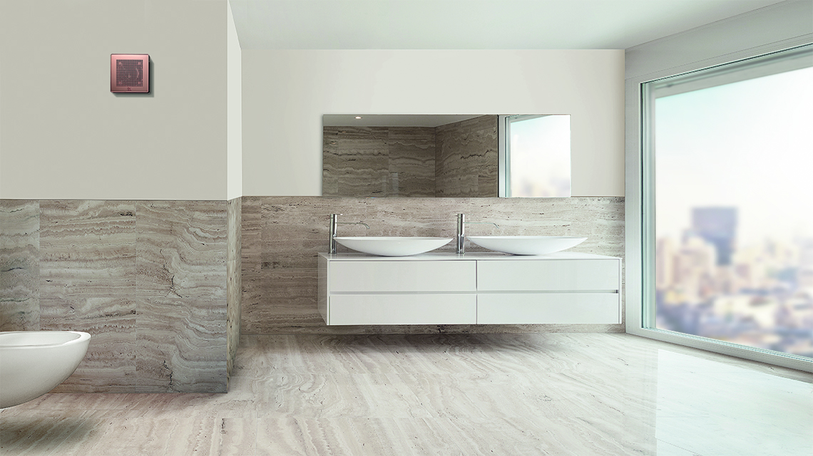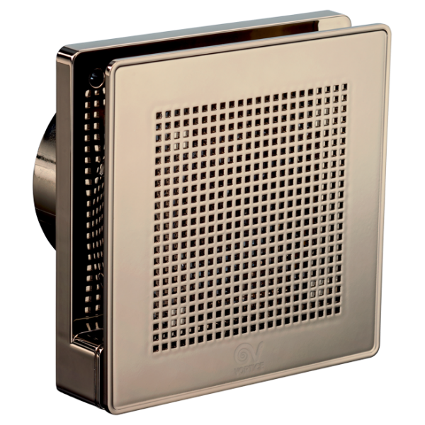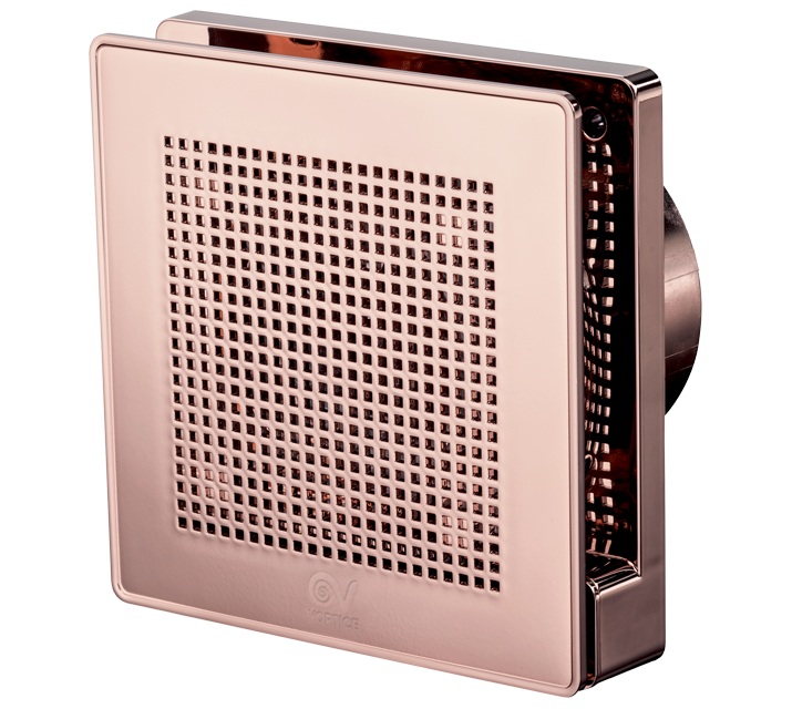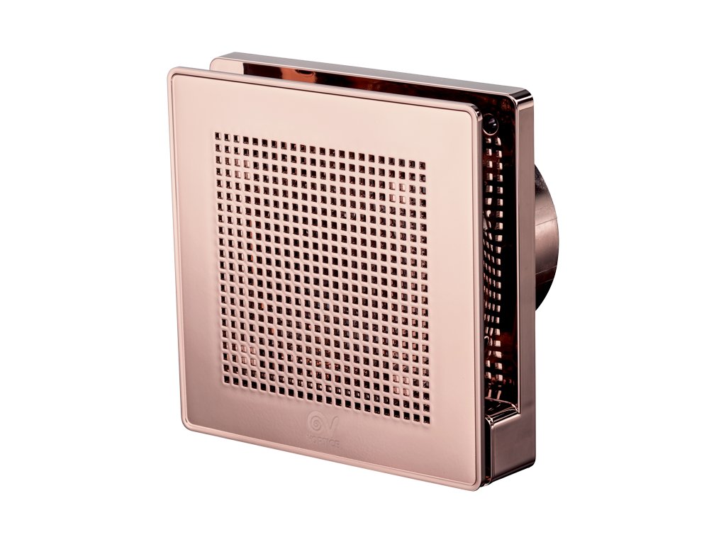 Veľmi tichý dizajnový axiálny ventilátor do kúpeľne s vysokým vzduchovým výkonom a vysokým krytím. Špeciálny dvojitý náter pomocou nanotechnológie v medenej farbe (farba ružové zlato PINK GOLD). Vhodné pre menšie a stredne veľké miestnosti s priamym výfukom alebo výfukom do krátkeho potrubia (ø100mm). Montáž na stenu alebo do stropu v akejkoľvek pozícii.