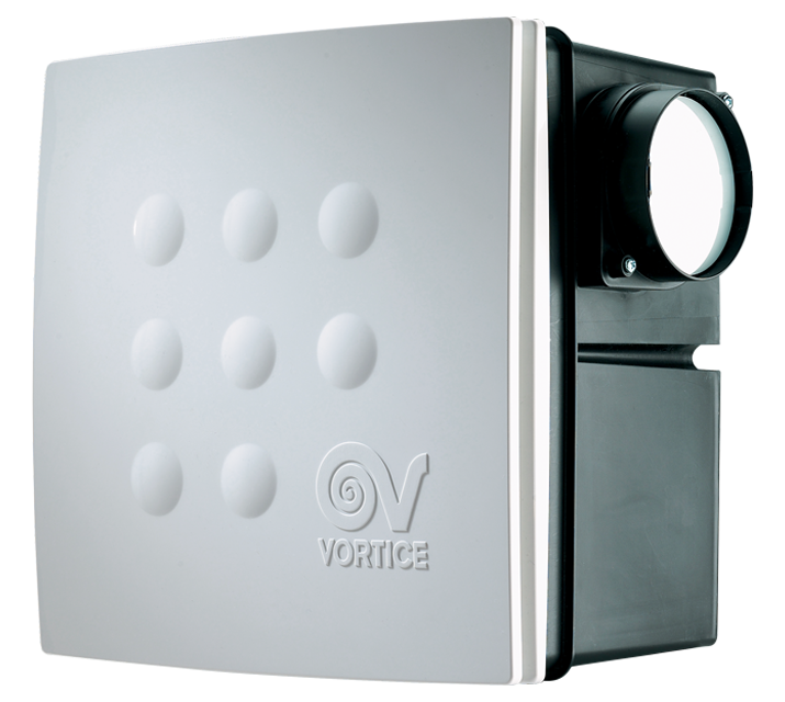 Dvojotáčkový radiálny odsávací ventilátor Vortice Quadro na zabudovanie do steny, vhodný pre odsávanie malých a stredných miestností v domácej aj komerčnej sfére, vrátane miestností s vysokou relatívnou vlhkosťou (kúpeľne, WC, pivnice). Ventilátor je schopný odsávať z dvoch miestností súčasne. Vhodný na pripojenie na potrubie s vyššou tlakovou stratou (dlhšie potrubie, nad 4m, koleno). S výfukom do potrubia. Dosahuje vysoký vzduchový výkon pri súčasnom dodržaní nízkej hlučnosti.