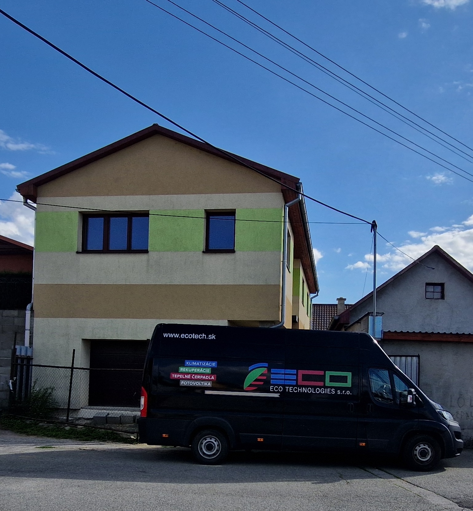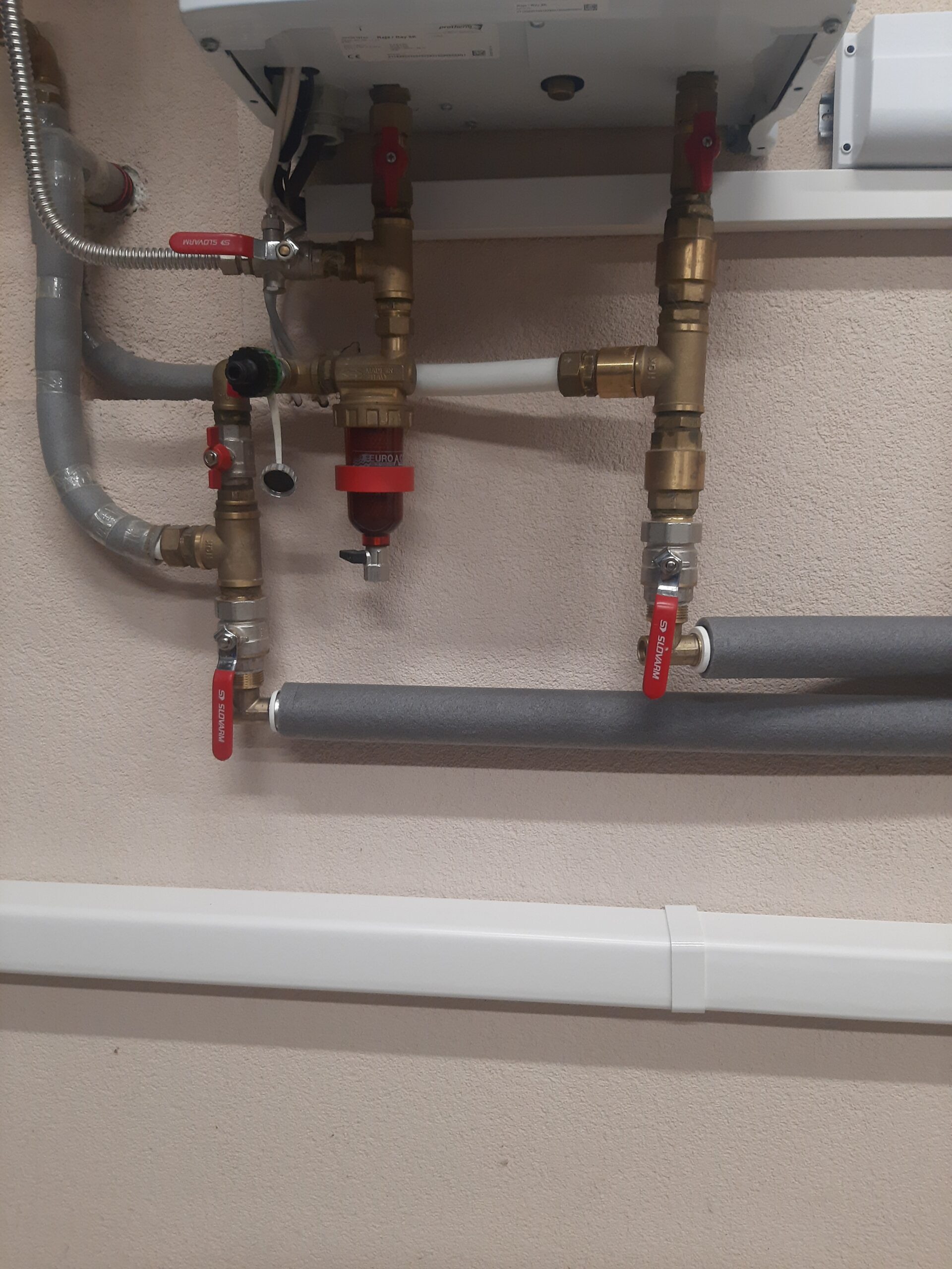 8kW nástenné tepel. čerpadlo Daikin EHVX s 9kW záložným ohrievačom a s integrovanou 180l nádržou TÚV. TČ - vykurovanie, chladenie a príprava teplej pitnej vody.