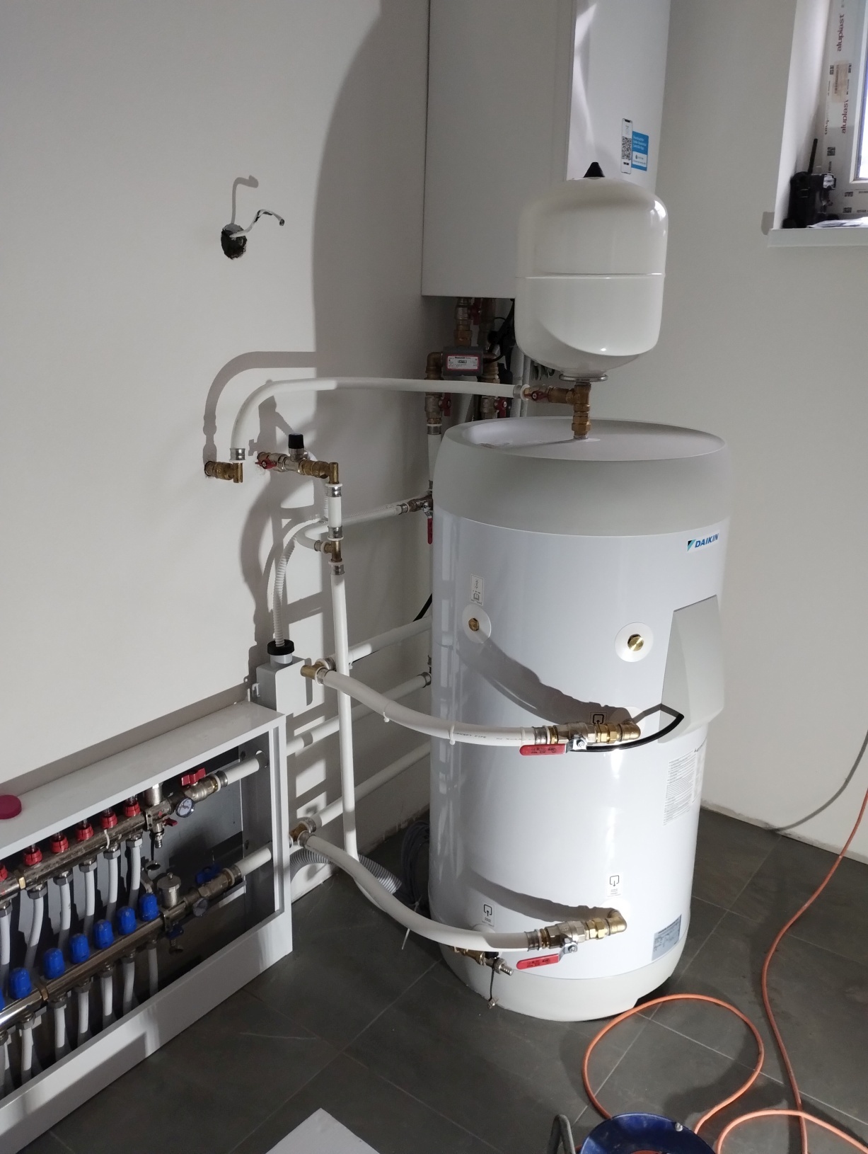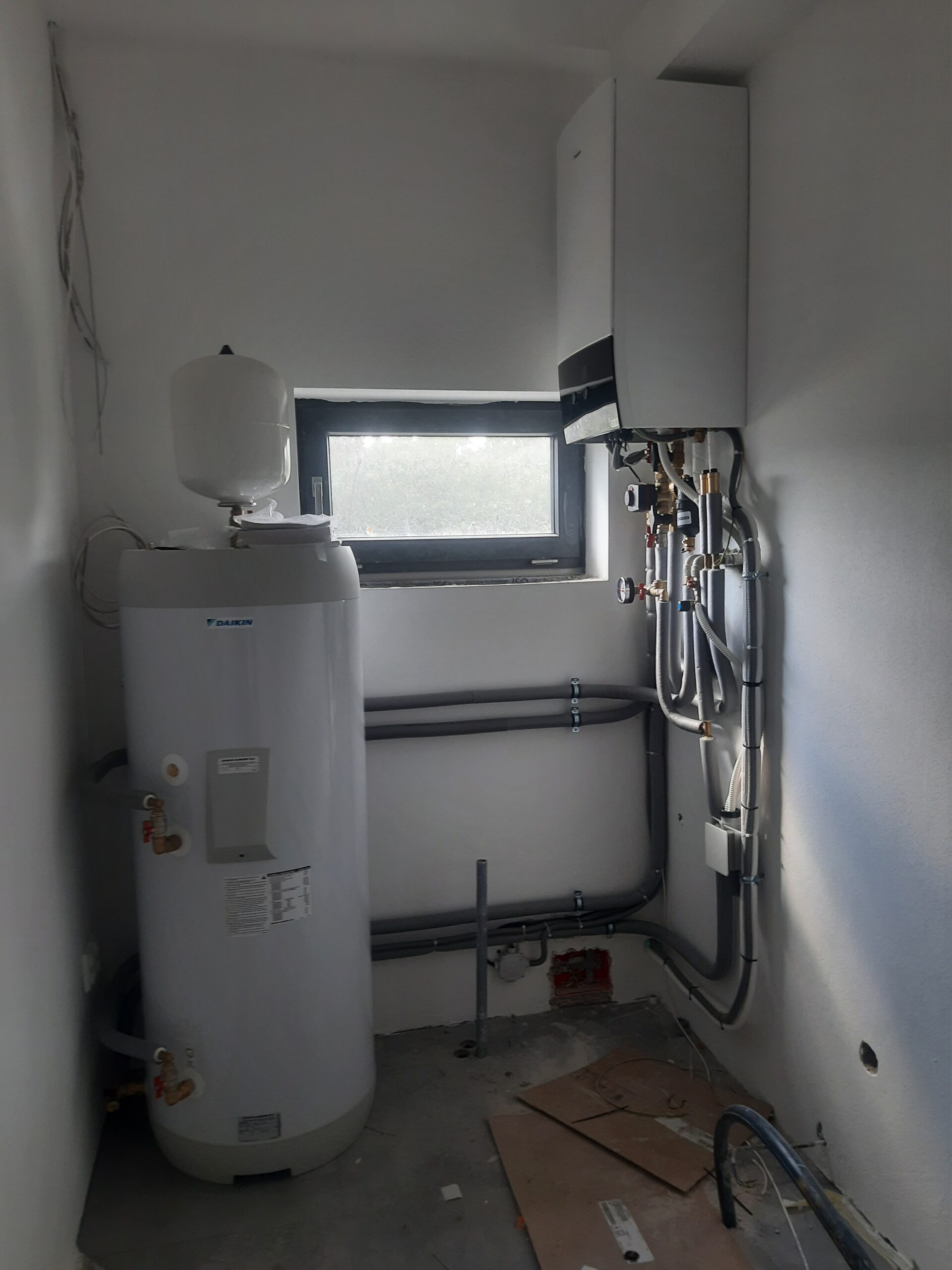 6kW nástenné tepel. čerpadlo Daikin EHBH s 9kW záložným ohrievačom a so 180l nádržou TÚV.
