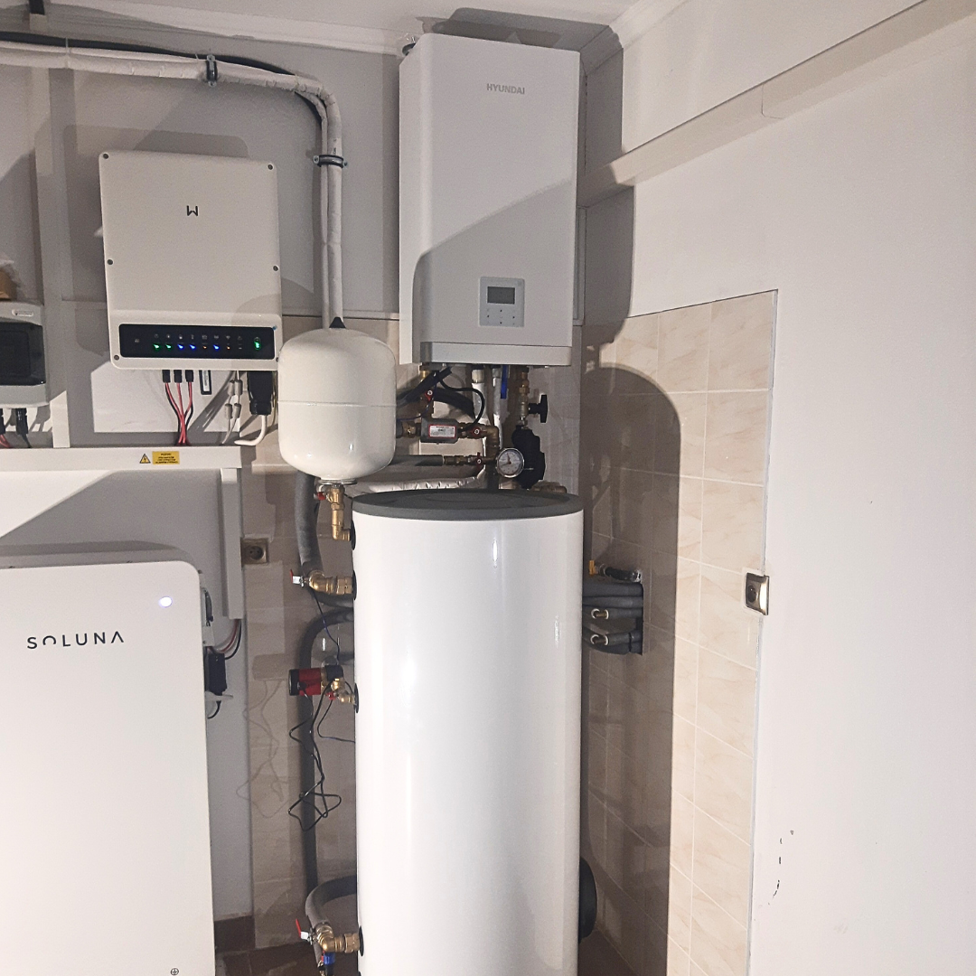 Inštalácia 12kW TČ Hyundai Supreme HPSI a 200 l nádrže na TÚV s napojením na existujúci vykurovací systém.